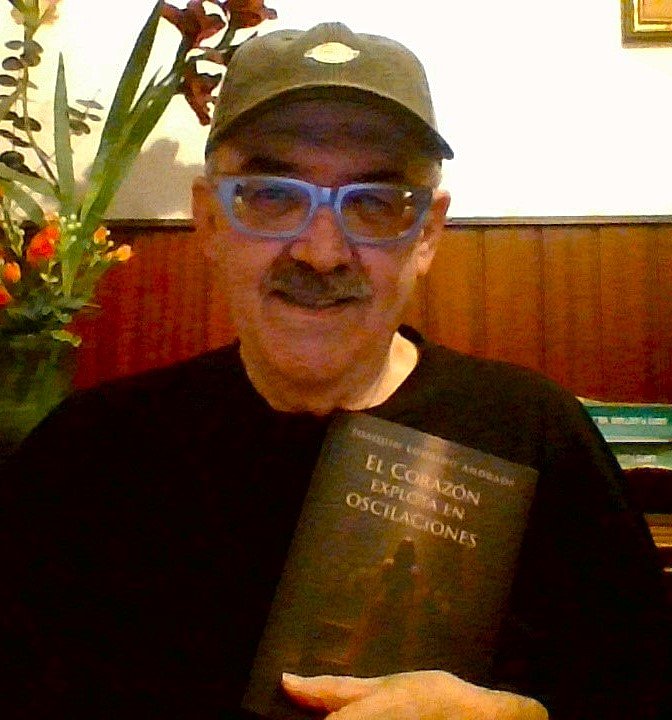 Joaquín Lourido junto a su nueva obra literaria El corazón explota en oscilaciones.